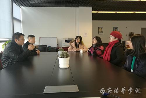 人文学院罗妮等各位老师与西部云谷负责人就如何开展更长久、有效的合作展开了深入的讨论。曾总建议下学期在入驻西安培华学院创客中心并开设工作室的前提下,希望能够为我校学生进行持久、有针对性的校内实训指导,由公司专业人士对学生甚至是教师进行相应的网络文案写作等内容的培训,建立起一支由教师带领学生直接参与实习的专业化队伍,使得学生能力的培养与新媒体网络的职业需求直接对接。曾总同时提出希望与西安培华学院人文学院继续深入合作,以达到常态化合作的新高度。