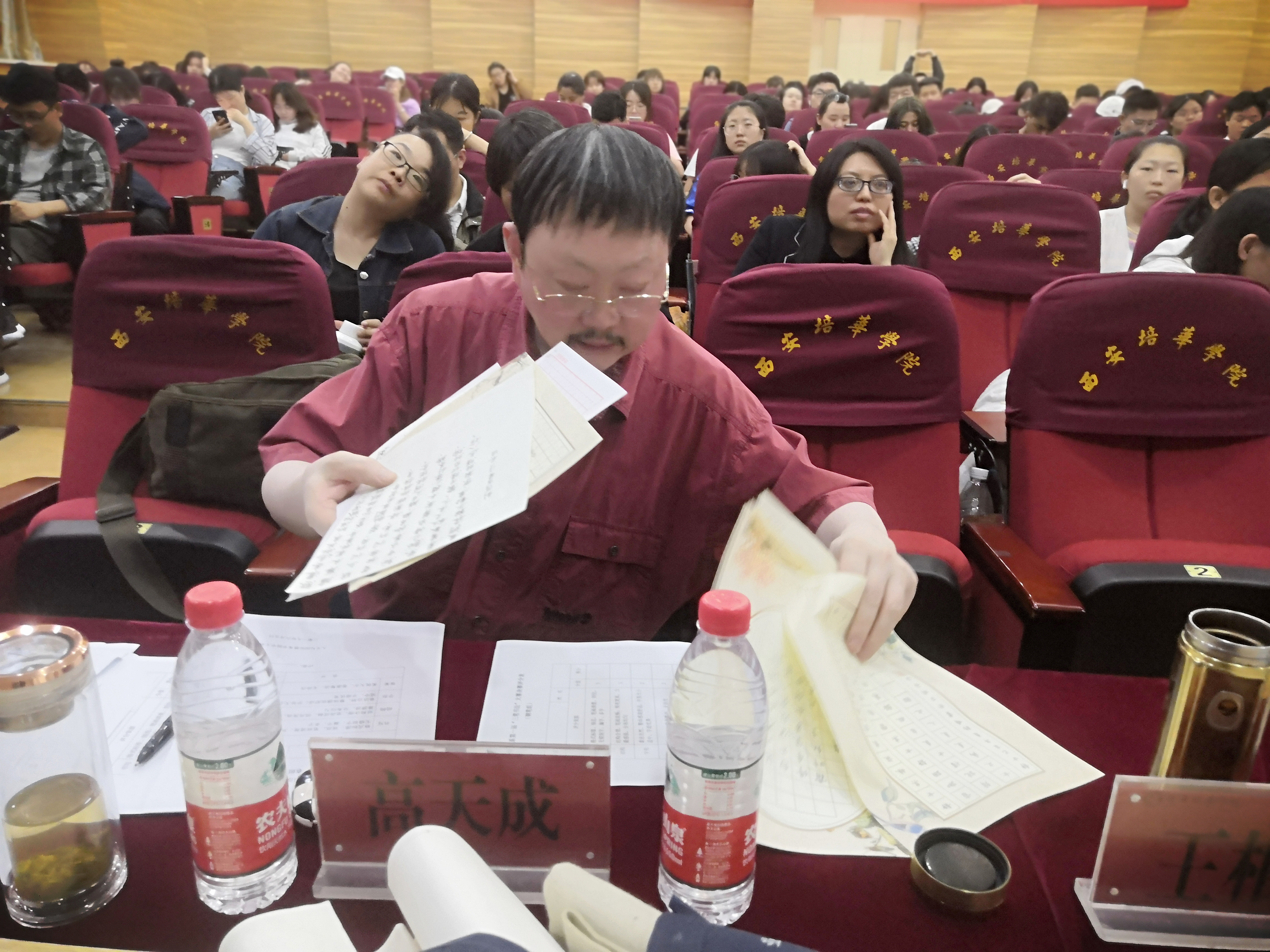 行楷隶篆见功夫,书法艺术耀光辉,中文学子齐欢聚, 大赛风采竞风流。2019年6月5日下午4:30,人文与国际教育学院中文系在格物楼J101举行中文系第一届“三笔书法”大赛的决赛。中文系学科带头人仵埂教授、中文系主任张静副教授莅临本次比赛现场。担任本次决赛评委的老师分别是中文系陈卫东老师、王相民老师、高天成老师。中文系全体教师及学生参加了本次活动。 本次大赛由中文系贾晶老师负责组织工作。