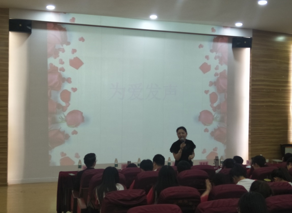 “为爱发声”环节结束后,主持人宣读钱星宇、张昱杰、贺圆圆同学进入前三强,前三名进行作品精神解读及创作背景,让观众更深层次地了解作品。在评委老师打分的环节,“华声初上”团队进行了现场配音表演。