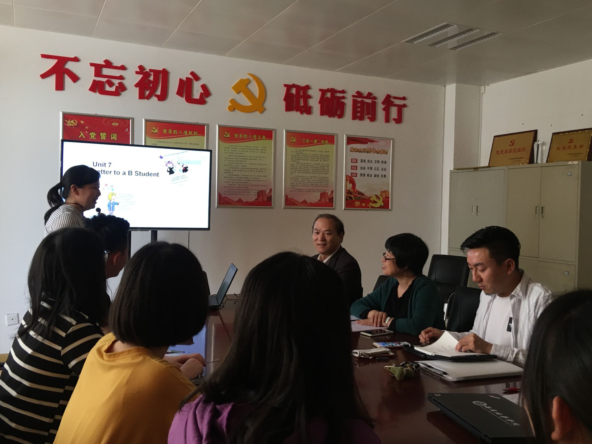汇报课结束后,不仅两位督导点评,三位老师还就听课的感想做了相互交流。虽然不是相同课程或语种,但存在于相异的表象之下,是普世的教学规律,正是由于不断地追求那些宝贵实在的教学规律,老师们才不懈地努力,切磋探索,朝着共同的峰巅攀登。