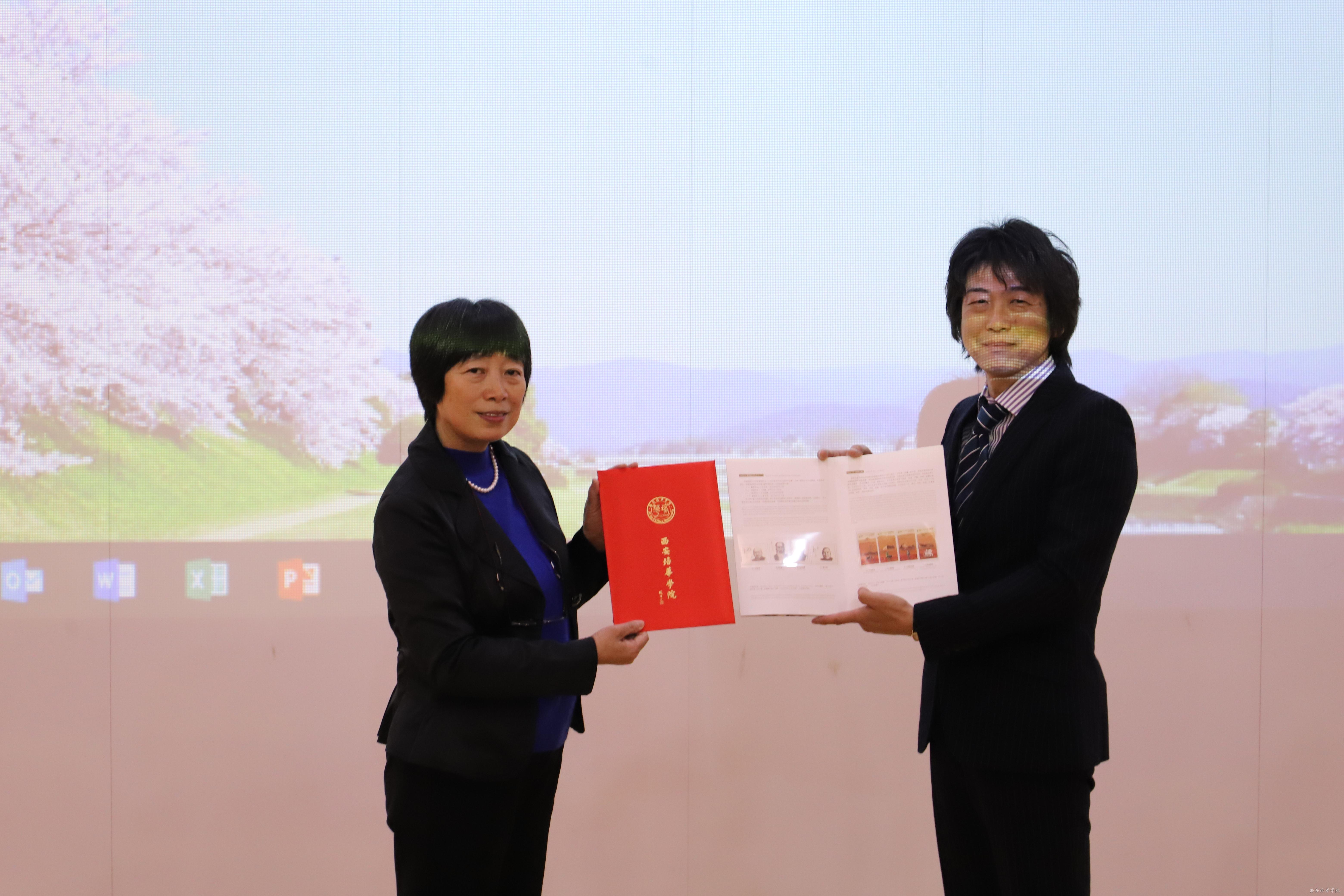 主讲人福井亘老师,现为京都府立大学大学院生命环境科学研究科副教授,博士生导师,在自然、城建环境,庭园与历史文化,环境设计等领域研究成果丰硕。我院日语专业王欣荣教授主持并担任了现场口译。