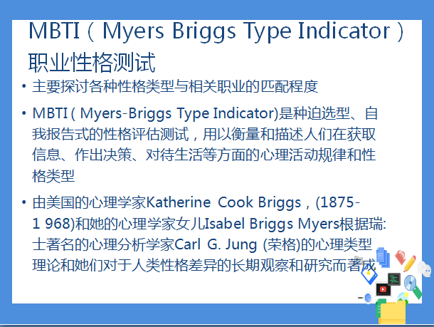 最后,给大家进行了“职业性格测试”,对测试结果进行了讲解,以便同学们对自己的能力、性格特点和思维方式进行进一步的分析,认清自我,把握好方向。