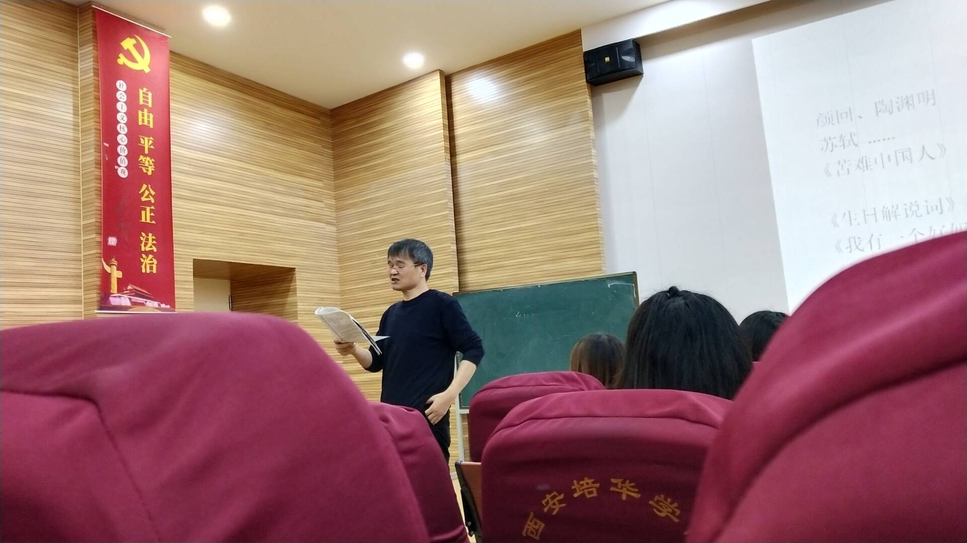 王高印老师还与同学们共同探讨作文及阅读方面遇到的问题。王老师把自己多年的教学经验与理论结合,指导我们如何上好作文课及阅读课。王老师的讲座生动、实用,使同学们感悟很深。相信通过这次讲座,每位同学都会学以致用,同学们在作文及阅读方面也会有所提升。