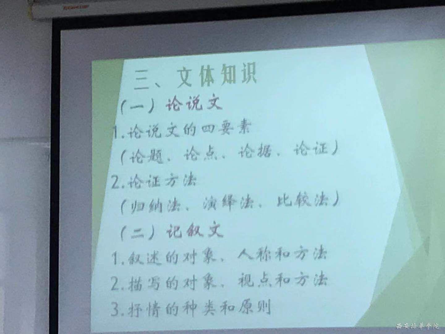 接着,陈老师从语言知识、文学知识、文体知识、课文阅读分析、作文五个方面,全面地讲解了专升本的出题类型和重点识记内容,内容齐全,分析准确到位,为准备参加专升本考试的同学理清了头绪,梳理了考试复习的条理。