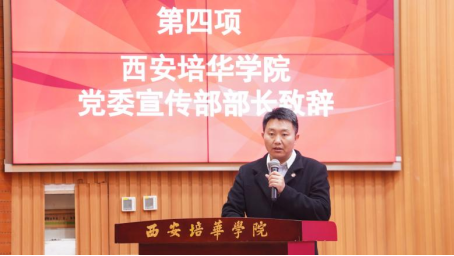 西安大学生文化联盟主席张智玮对西安培华学院法律服务中心的成立进行了祝贺,他希望同西安培华学院法律服务中心一起努力,一起普及法律知识、帮助学生解决法律问题。