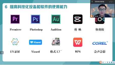 最后,姬志垒老师从实践经验出发,提出了未来语文老师培养的必备能力,包含“创新教学方法”“培养与时俱进的精神”“提升自身教学水平和文化水准”“提高科技化设备和软件的使用能力”等六个方面,再次强调提升自身文化水平及专业技能的重要性。