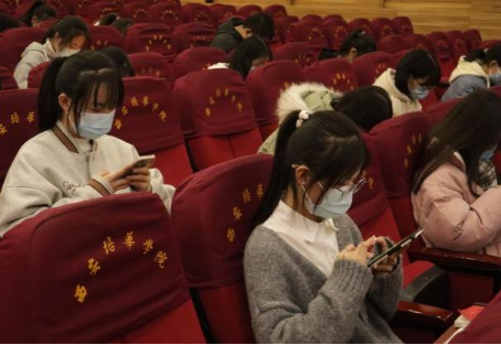 在活动最后,举办了宪法知识竞赛,法学系学生代表利用云班课现场进行答题,同学们全神贯注,一时间气氛紧张热烈。