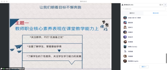 为进一步加强教育方向同学们对教师职业的认知与理解,并帮助同学们制定合理清晰的职业发展规划,外语系英语专业于2022年12月11日下午2点至4点半组织英语专业教育方向的同学们及部分教师代表参加了21级英语专业职业规划讲座网络研讨会。本次研讨会由西安市长安区周家庄小学校长何勃老师主讲,主要对教师职业生涯等方面作了全面的讲解,英语专业教师王星月主持本次研讨会。