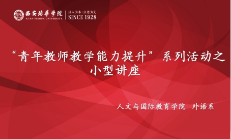 3月24日下午两点,为进一步提升青年教师的教学能力,打造高质量课堂教学,外语系在格物楼1209教室开展了“青年教师教学能力活动月”专题模块讲座。