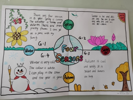 组织“My school day”的板书设计大比拼活动,有的同学以“学校的一天”为主题制作钟表、有的同学观察学校的动植物利用折纸制作板书素材,探索花朵、蝴蝶、树叶、等动植物的特点,有的同学以学习学习为主题,利用不同文具的简笔画完成英语词汇课程板书设计。同学们积极探讨不同年级学生的心理认知特点,思考如何利用板书吸引学生课堂注意力。学生们在图文并茂的板书绘画过程中,探索板书设计的特有魅力。