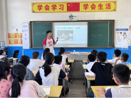 小学教育是启蒙教育,这一阶段是学生思想、品德形成的重要时期。新时代要加强爱国主义教育,培养青少年的爱国情怀。志愿者郝智杰通过宣讲抗美援朝精神,普及红色文化,歌颂英雄人物,传承红色基因,让学生深刻体会到先辈们用自己的生命换来了现在和平年代人们幸福的生活,引导学生筑牢信仰,把爱国情、报国情融入自己的人生目标。以爱国主义为核心,将中华民族传统美德和革命传统的教育相结合,贯彻于学生日常生活的各个方面。培养有理想有道德有文化有纪律的社会主义建设者和接班人