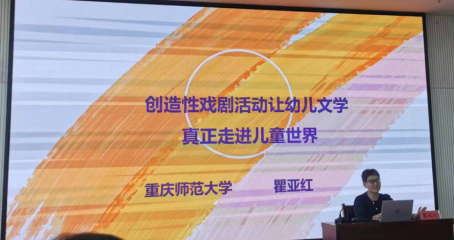 重庆师范大学副教授瞿亚红作“创造性戏剧让幼儿文学真正走进儿童世界”的教学分享。瞿教授通过教学案例《千万不要当海盗》分析了“创造性戏剧”的内涵,提出了创造性立体式阅读,并认为创造性戏剧活动的游戏精神有助于幼儿成长幻想游戏。