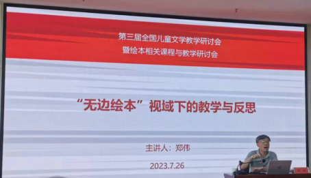 福建幼儿师范高等专科学校郑伟教授作了“无边绘本视域下的教学及反思”主题报告。郑伟教授为大家分享了“无边绘本”的内涵,接着提出了“无边绘本”的理念与绘本教学中应该思考的角度,最后提出了几点“无边绘本”引发的思考:要引导学生在把握典型绘本特点基础上,增强对绘本艺术的概念内涵变革型及历史演绎的多维性。
