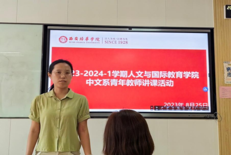 为进一步加强青年教师师资队伍建设,着力提升中文系青年教师授课水平,8月25日16:30-18:00,我系开展了青年教师讲课活动。此次活动由系主任庞欢老师主持,副主任罗妮老师、副主任申艳霞老师、副主任王中俊老师担任评委,中文系青年教师参加了此次讲课活动。