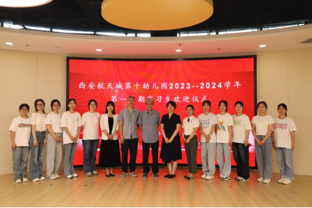 9月4上午,人文与国际教育学院学前教育专业2020级本科生在专业带头人刘迎接老师、系主任栾博强老师、系副主任王璐露老师,团委副书记曹帅老师的带领下赴西安航天城第十幼儿园进行教育实习活动。航天城第十幼儿园园长陆哲、保教主任严丹老师本着“开放共融、互通交流、共同成长”的理念,使学生在实习的过程中有一个更好的发展。