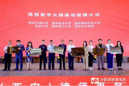 揭牌后,陕西省慈善联合会、陕西省康养产业协会、陕西省医药商会、陕西省国生军民融合企业商会、西安交通大学、西北政法大学、西安建筑科技大学、延安大学、西安理工大学、西安培华学院、西安交通大学出版社,分别授予中联西安办公室战略合作单位、教学实践基地的牌匾,希望与中联西安办公室在法律服务、法学教育领域进行深度合作,相互支持、相互成就。
