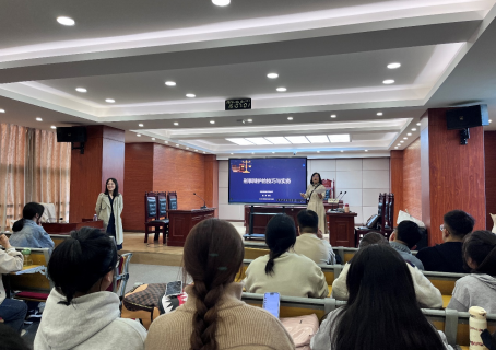 在《律师与公证实务》授课过程中,赵丹律师与法学专业田思雨老师一起走进课堂,以《刑事辩护的技巧与实务》为主题,从当前刑事案件律师行使刑事辩护权出发,通过对律师行使辩护权进行辩护的理论基础、实务技巧、难题应对的提问与思考,展开了本次讲座的主要内容。