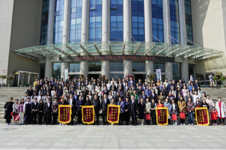 全体参会人员在图书馆门前合影留念并参观校史馆