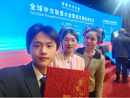 在专项论坛“全球中文联盟大会暨语言展启动仪式”中,我校2022级汉语国际教育专业赵佳兴同学荣获表彰。赵佳兴同学在2023年12月举办的“全国首届国际中文教育教学技能大赛”中荣获三等奖,为我校汉语国际教育专业的发展再添风采。