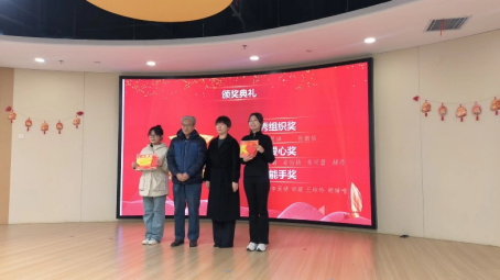 会议第四项是颁奖环节。优秀组织奖由刘教授和陆园长颁发给刘思琪和张懿恬两位同学。
