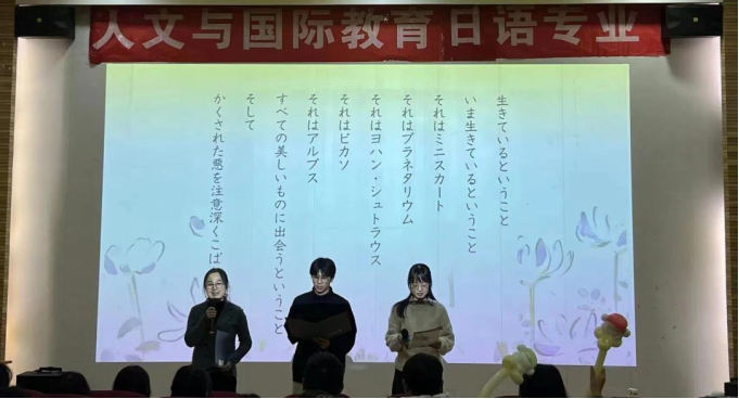 人文与国际教育学院日语专业依托日语口语协会社团于2023年12月25日举办了2023年度教学成果汇报大会。