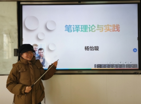杨怡璇老师对《笔译理论与实践》进行了说课演示。主要从课程简介、教学中遇到的痛点难点、教学过程、教学效果展开介绍。对教学内容进行重点主题单元的挑选,并设计自主训练翻译库,同时将翻译实践的经验和知识补充到教学中。