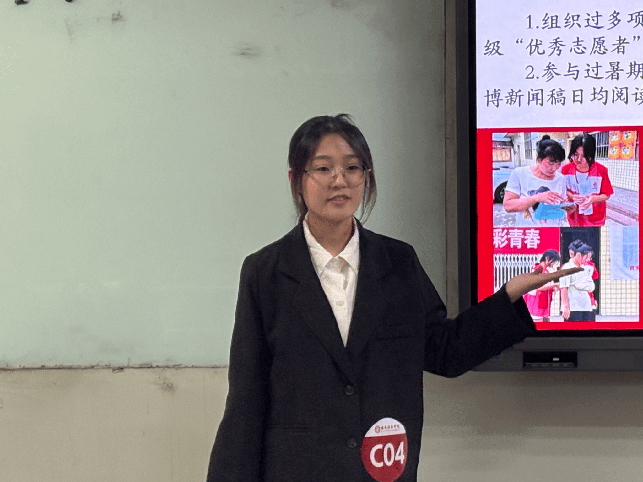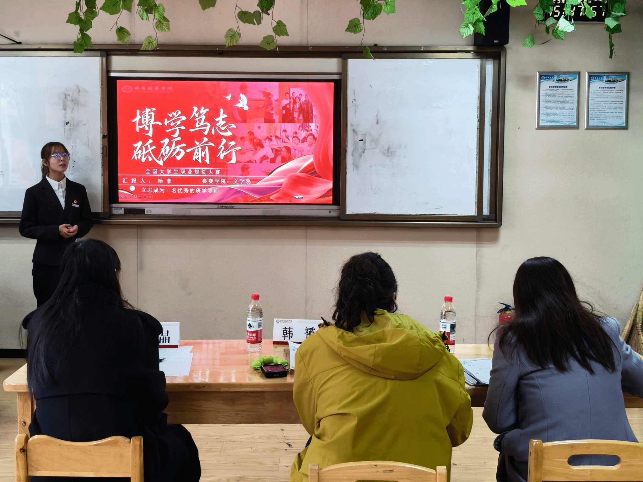 比赛现场气氛热烈,参赛选手精神饱满。在个人展示环节,选手们通过精心准备的PPT,从自我剖析、职业环境分析、目标定位、实施路径等多个层面,生动展示了各自的职业蓝图。在职业规划展示环节,各位选手借助 PPT,结合自身专业特色与兴趣特长,生动阐述了各自的职业目标与规划路径。有的选手立志成为一名优秀的语文教师,从教学能力提升、教育理念塑造、职业晋升路径等方面详细规划,展现出对教育事业的热爱与执着;有的选手聚焦文化传播领域,计划进入媒体行业或文化企业,围绕文案创作、品牌推广、行业资源积累等内容展开论述,体现出对文化产业发展趋势的敏锐洞察。选手们条理清晰的表达、饱满的精神状态同时结合自身特点,提出了涵盖教育、传媒、文创等多个领域的发展规划,展现出文学院学子开阔的视野和创新的思维。