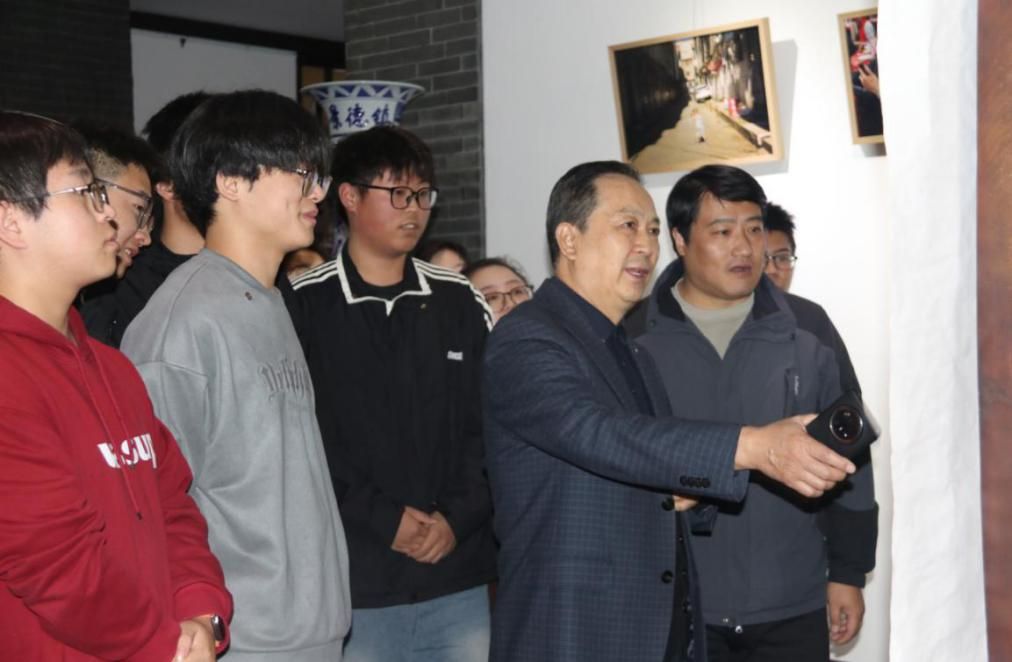 颁奖仪式落幕,嘉宾们在陈鹏涛老师的带领下移步展区,近距离感受优秀书画作品的艺术魅力。展区内,一幅幅作品各具特色:软笔书法苍劲有力、飘逸灵动,硬笔书法工整规范、清秀雅致,绘画作品意境悠远、生动传神。领导、嘉宾与同学们驻足品鉴,相互交流创作思路与心得,不时发出阵阵赞叹。