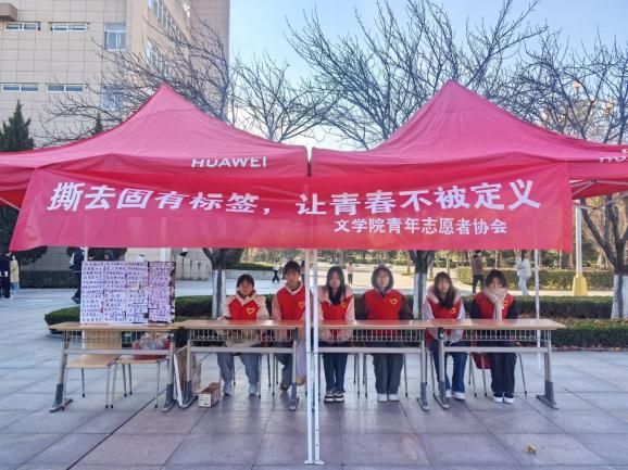 提起青春,总有人将其框进既定模板里:要循规蹈矩、要符合期待、要活成“标准答案”里的模样。但青春从不该被标签绑架——不是只有埋首书卷才叫努力,不是只有沉默内敛才叫得体,不是只有按部就班才叫稳妥。那些被强加的限定,本就不该成为青春的枷锁。为了给迷茫中的同学提供多元参照,挖掘“不被标签定义”的青春力量,西安培华学院文学院青年志愿者协会于11月19日~20日于综合楼西广场开展了主题为“撕去固有标签,让青春不被定义”的活动。