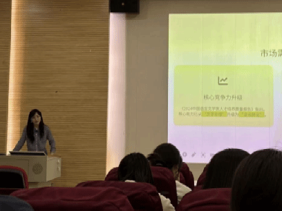 紧随其后的第二场讲座,以“就业思维跃迁与国际化实践”为主题,别开生面。宇海丽老师引导学生突破传统就业视野,探讨如何将扎实的中文功底与全球化背景下的新兴岗位、跨文化交流需求相结合,分享了在国际化企业、对外汉语教学、文化传播等领域实现职业发展的可能性与成功案例,拓宽了学生的就业思路。
