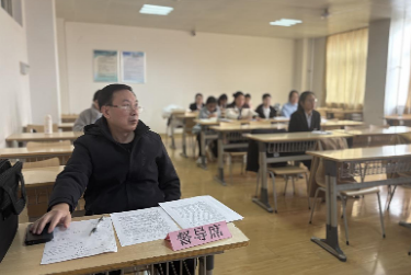 (答辩组秩序井然,院长助理张萍教授巡查旁听)