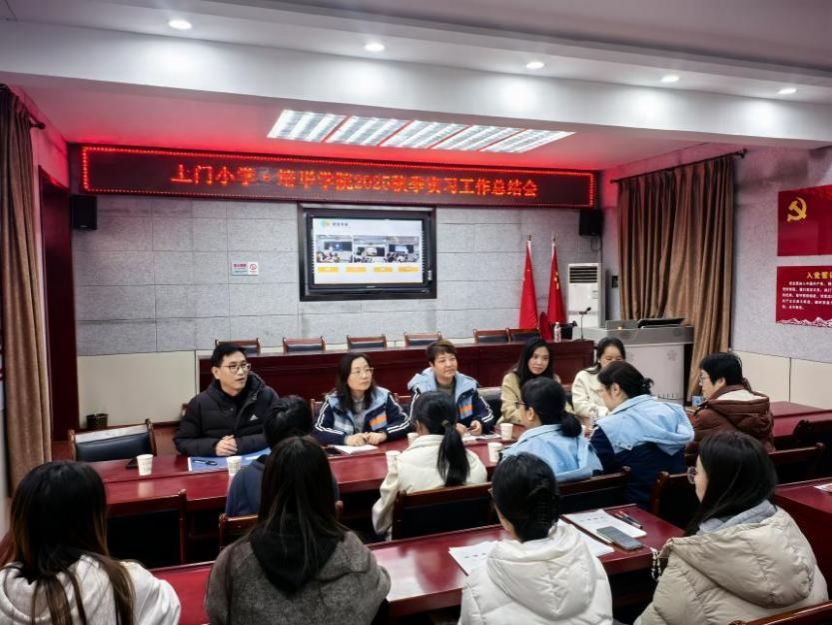 为进一步推动学生的语文教学能力发展,加强校企合作育人成效,文学院人文素养与语文教育教研室朱红梅主任、实习实训工作负责人张媛主任,于11月27日下午前往西安市莲湖区土门小学,看望了在该校进行语文教师教育实习的同学们,并受到了土门小学校长张瑛、副校长郭蕊、主任侯瑛、周东良以及多位资深带教老师的热情接待。双方就学生们在土门小学进行的为期一月的语文教师教育实习工作进行了总结交流,并针对进一步加强校企合作、开展联合教学等主题展开了深入讨论,为双方的后续合作注入了活力。