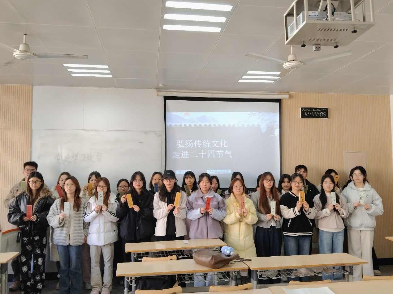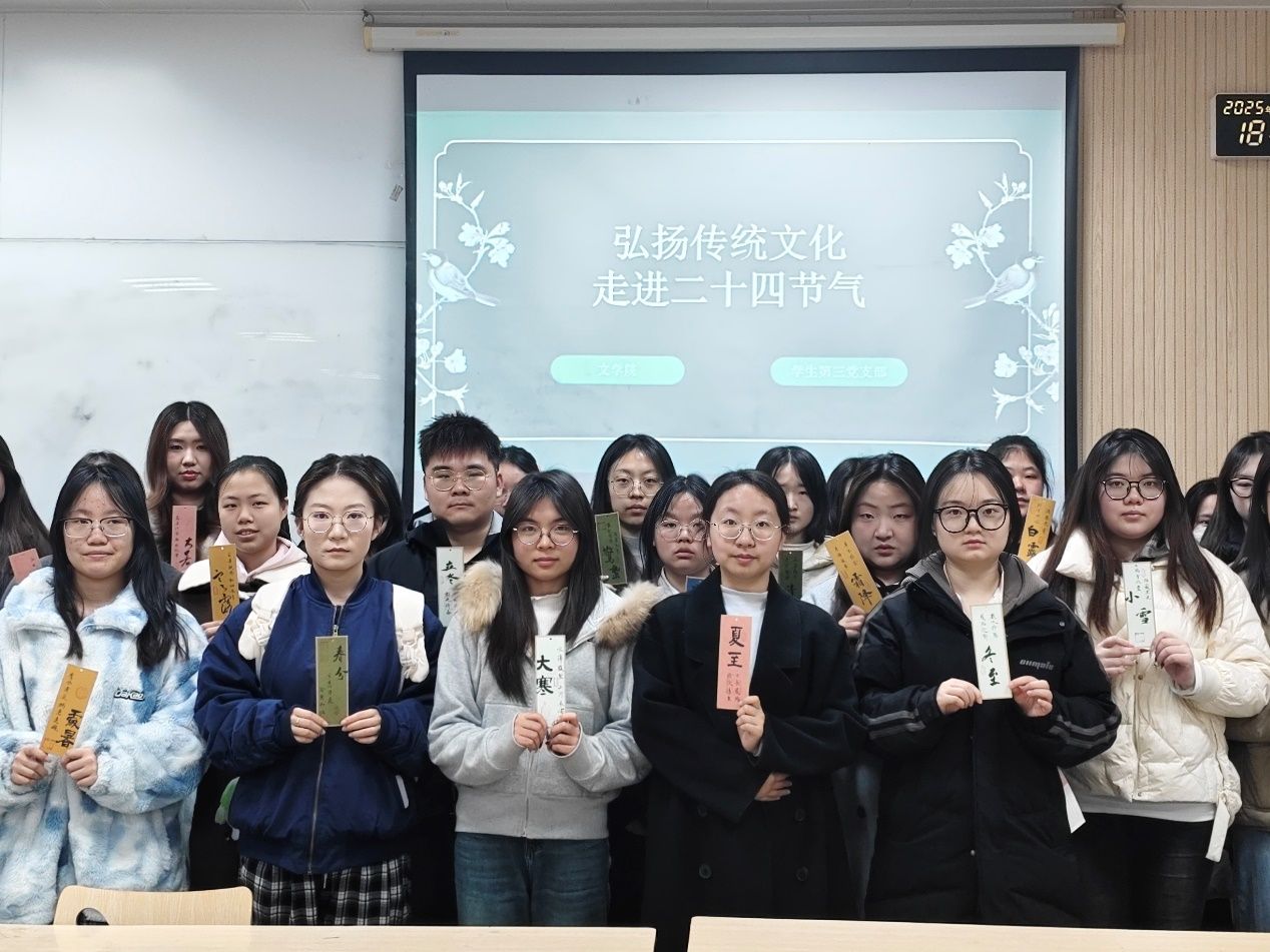 本次活动结合文学院党建品牌,11月28日在各学生党支部开展二十四节气学习与交流。学生在活动中,结合分发的二十四节气书法作品书签,交流学习每一个节气的起源、习俗以及其在现代社会中的影响,通过丰富的实例和详尽的描述,深入了解每一个节气的独特魅力和文化内涵,品味二十四节气在中国民间的重要地位及其丰富的文化内涵。