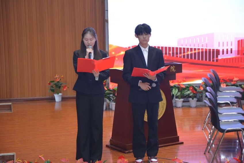 文学院党委书记兼副院长南兵、党委副书记王伟平、专兼职党务干事参加此次会议并担任评委。本次活动由孟盈希和祝雅枫同学主持。