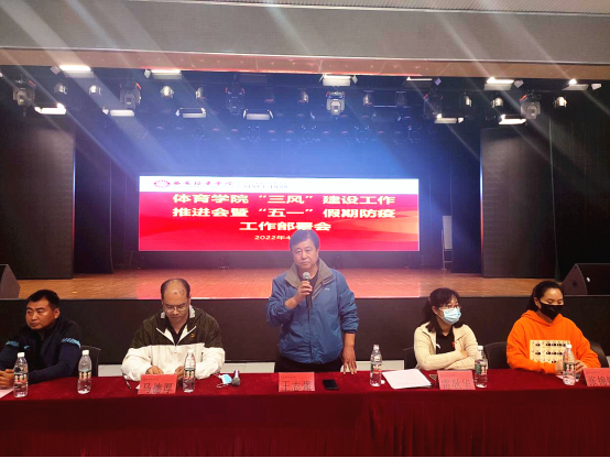 学风是校风的重要内容,是学校治学态度、治学原则、治学水平的综合体现,也是保持学院可持续发展的根本。值此五一假期,为疫情期间做好防疫工作的同时,进一步落实我院的教风、学风,工作风,“三风”建设工作,体育学院于4月29日中午在大学生活动中心组织开展了“三风“建设工作推进会暨五一假期防疫工作部署会议。