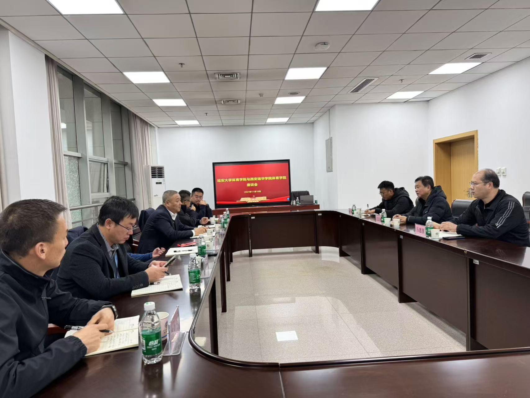 出席此次座谈会的领导有延安大学体育学院院长宗有智、党委书记兰鸿涛、党委副书记徐海阔、副院长宗延伟、薛亚东、张应龙,以及西安培华学院体育学院院长王志强、党总支书记兼行政副院长马德厚、大学体育教学部杜峰副主任。