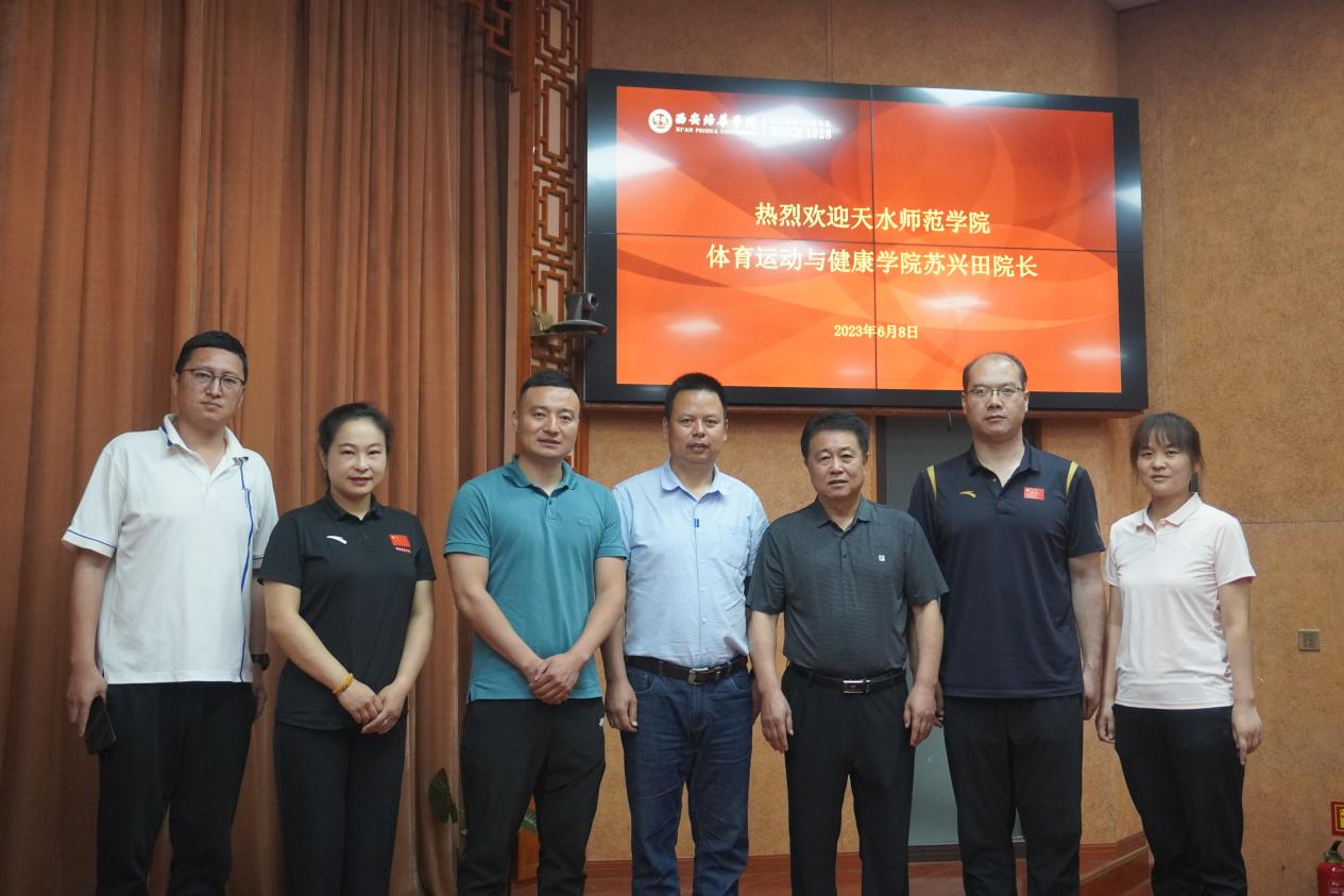 座谈上,体育学院王志强院长对体育学院进行了简单介绍,并提出希望通过本次座谈会及讲座,可以加深与天水师范学院体育运动与健康学院之间交流,相互学习。随后,苏兴田院长介绍了天水师范学院体育运动与健康学院,并对体育学院的邀请表达了感谢,指出希望本次交流能够开启和体育学院的交流合作,加深体育文化、知识的相互学习。