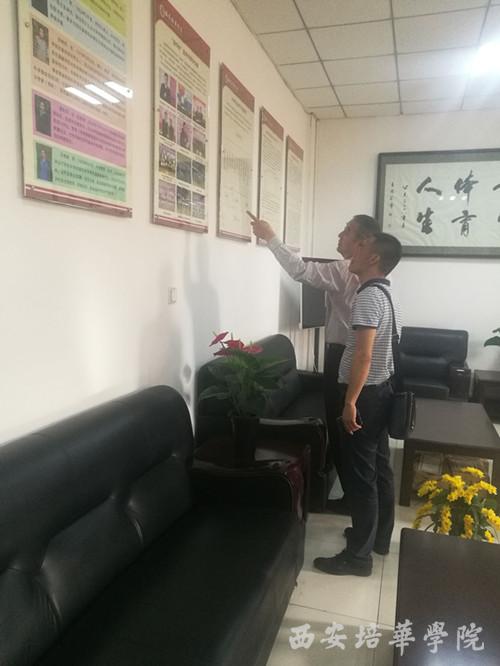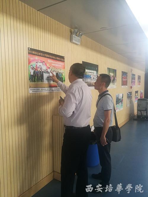 首先,考察团一行人来到培华学院副校长、党委副书记、工会主席、校纪委书记、体育中心主任徐国富教授工作室,在这里与徐国富教授进行有关学校体育工作方面的交流。徐国富教授对我校体育俱乐部教学改革的进程、发展及取得的成绩做了较为详细的介绍,徐国富教授讲到:“如何为青年教师搭建平台,提升教师的业务能力,如何激励青年教师考研,提高青年教师的科研能力”,并且详细介绍了我校课内外一体化的的俱乐部教学模式(课堂教学、课外俱乐部、代表队)的实施现状。
