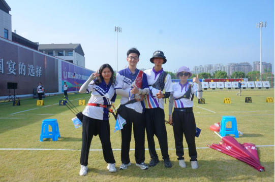 赛场上,我校运动员们屏息凝神,站位、搭箭、扣弦、预拉等动作一气呵成,一道道离弦之箭飞快射向靶心,运动员们冷静沉着的态度、精准高效的判断,彰显了培华学子们奋勇向前、坚韧不拔的精神风貌。在前两个比赛日发挥出色, 男队三人、女队两人挺进全国八强。在最后两日的团体淘汰赛中,西安培华学院代表队队员们密切配合,紧密团结,齐心协力,展现出了卓越的团体实力和出色的射箭技巧。他们每一箭都准确无误地击中目标,展现出了高超的射箭水准和稳定的心态。