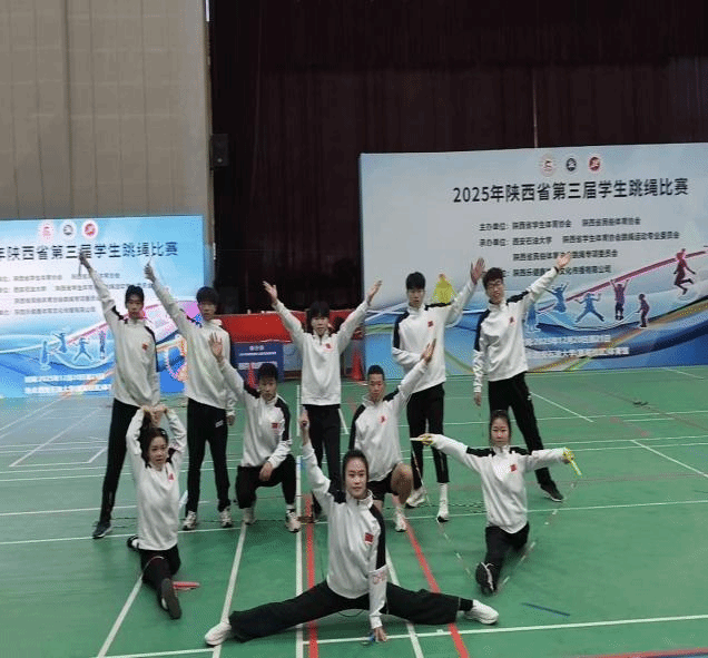 2025年12月21日,为期两天的陕西省第三届学生跳绳比赛在西安石油大学雁塔校区圆满落幕。作为全省覆盖学校最广、规模最大、竞技水平最高的校园跳绳盛会,本次赛事吸引了全省128所学校的2170余名学子同台竞技,我校花样跳绳代表队凭借过硬的竞技实力与优良的赛场风貌,一举斩获团体总分第一名,并荣获道德风尚奖,实现竞技成绩与精神文明的双重丰收。