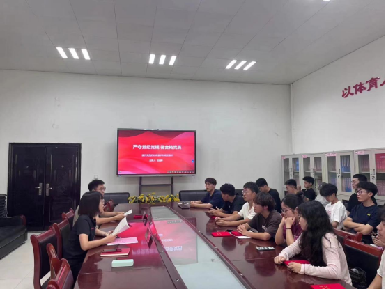 为深入学习贯彻习近平总书记关于党纪学习教育的重要讲话和重要指示精神,准确把握党纪学习教育目标要求和重点任务。2024年6月19日,体育学院学生党支部开展了支部书记专题党课活动。本次党课主题为“严守党纪党规,做合格党员”主题党课,体育学院学生党支部书记杜晓婷老师主讲,体育学院学生党支部全体成员参加。本次党课旨在通过深入学习党纪规定,引导党员严守党的政治纪律和政治规矩。