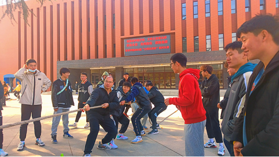 当比赛的哨声响起,同学们使出浑身力气全身心地投入比赛,赛场上奋勇积极;马德厚副院长和辅导员冯鑫也在赛场上为同学加油鼓劲,并亲自参与其中。呐喊声、欢呼声……此起彼伏,飘荡在整个校园上空。
