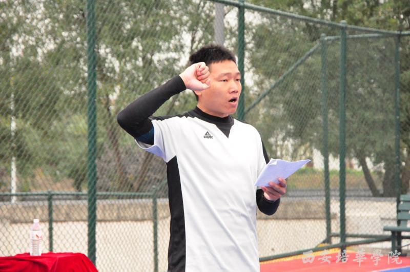 开幕式由西安培华学院副校长、党委副书记、工会主席、校体委主任、体育中心主任徐国富教授致词。他表示:篮球项目具有广泛的参与性、强烈的竞争性和优美的观赏性,受到了广大师生的普遍欢迎,增强了积极参与意识。尤其是在篮球高分制创新规则的设立以来,在西安培华学院创造了七项世界吉尼斯纪录。前段时间徐国富教授刚刚荣获“世界上篮球半场超远距离投篮命中率最高”、“世界上篮球中场超远距离投篮命中100球命中率最高”、“世界上20分钟篮球掷地反弹盲投命中率最高”三项世界纪录,进一步的证明高分制创新规则的改革,进一步营造校园体育文化的氛围,掀起全民健身的新高潮,让大家以饱满的精神投入到工作和学习当中。