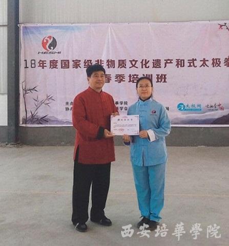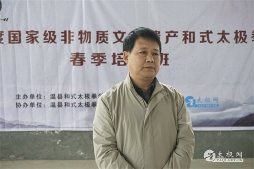 2018年4月4日,国家级非物质文化遗产项目和式太极拳春季培训班开班仪式在温县和式太极拳学院举行。出席本次开班仪式特邀嘉宾有:鹤壁市文广新局副局长杨剑卫、原焦作市政协副主席和金贵、西安培华学院体育中心太极拳俱乐部主任黄慧、襄阳市太极拳协会会长马五等。