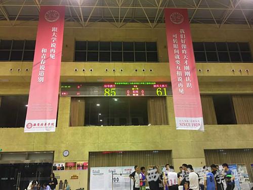 随着裁判员的哨音响起,比赛瞬间进入高潮,整个比赛跌宕起伏、异彩纷呈,在张恒队长的带领下,我校队员一直处于绝对领先地位,不甘落后的科大队员凭着顽强拼搏的精神博得在场观众的热烈掌声,第三节张恒队长的十分球和第四节高阳老师的十分球将比赛推到了另一个高潮。通过双方队员的激烈拼搏,最后将比分定格在了85:61。比赛结束后,徐校长发现了科大一名队员有十分球的能力,在徐校长的指导下,短短4分钟该队员就命中2个十分球,此刻,该队员信心爆满、异常兴奋,带队的庄主席也非常高兴的邀请我校队员前往科大进行业务交流。