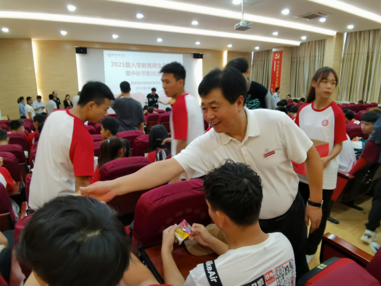 由于疫情原因,身处省外的同学回家路途艰难,徐国富教授、柳雨主任、王志强院长等各位领导陪伴体育学院2021级新生一起度过了中秋节,并向同学们分发了西安培华学院的定制月饼,让同学们感到培华家的温暖!