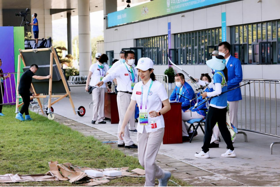 孙茉晗老师自今年一月起被十四运射击射箭项目竞委会借调,一直参与赛事筹备,负责射箭项目的裁判员培训、竞赛管理等工作,在本次射箭项目决赛中担任裁判员。