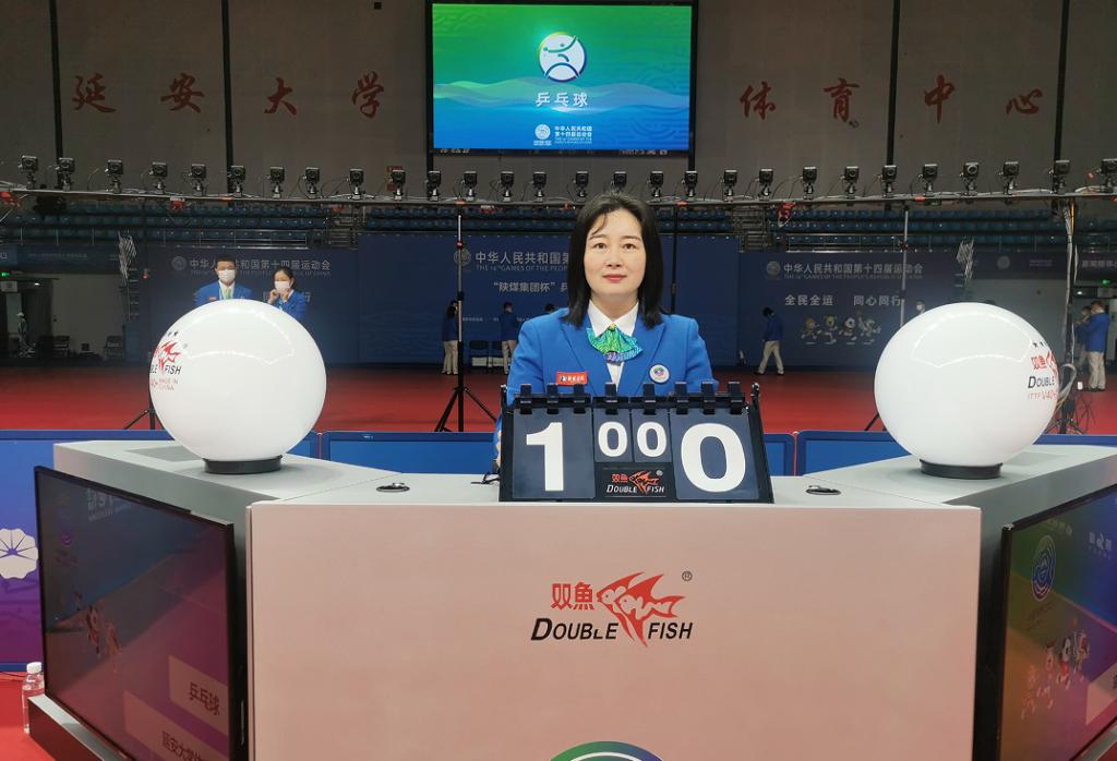 赵曼曼老师乒乓球国家级裁判员,受邀担任中华人民共和国第十四届运动会乒乓球项目测试赛和乒乓球项目决赛的裁判工作,在制裁过程中公平公正,一丝不苟,坚守铁的纪律,一心一意为十四运做贡献。