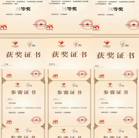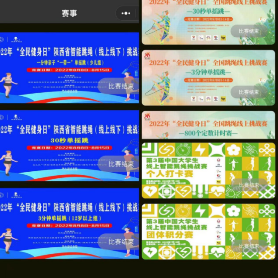 2022年8月8日是我国第14个“全民健身日”,为深入宣传推广新修订的《体育法》,进一步推动构建更高水平的全民健身公共服务体系,集中展示党的十八大以来全民健身工作的成就,充分展现群众体育蓬勃发展的态势,为党的二十大胜利召开营造积极向上的浓厚氛围,国家体育总局于今年8月8日前后在全国范围内组织开展“全民健身日”主题比赛。西安培华学院体育学院花样跳绳代表队积极参赛,在2022年“全民健身日”全国跳绳线上挑战赛当中,队员们乘胜追击,再创佳绩: