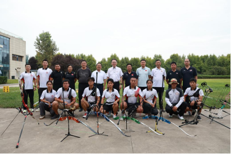 刘宝平主席、姜波理事长与射箭队教练、队员亲切合影